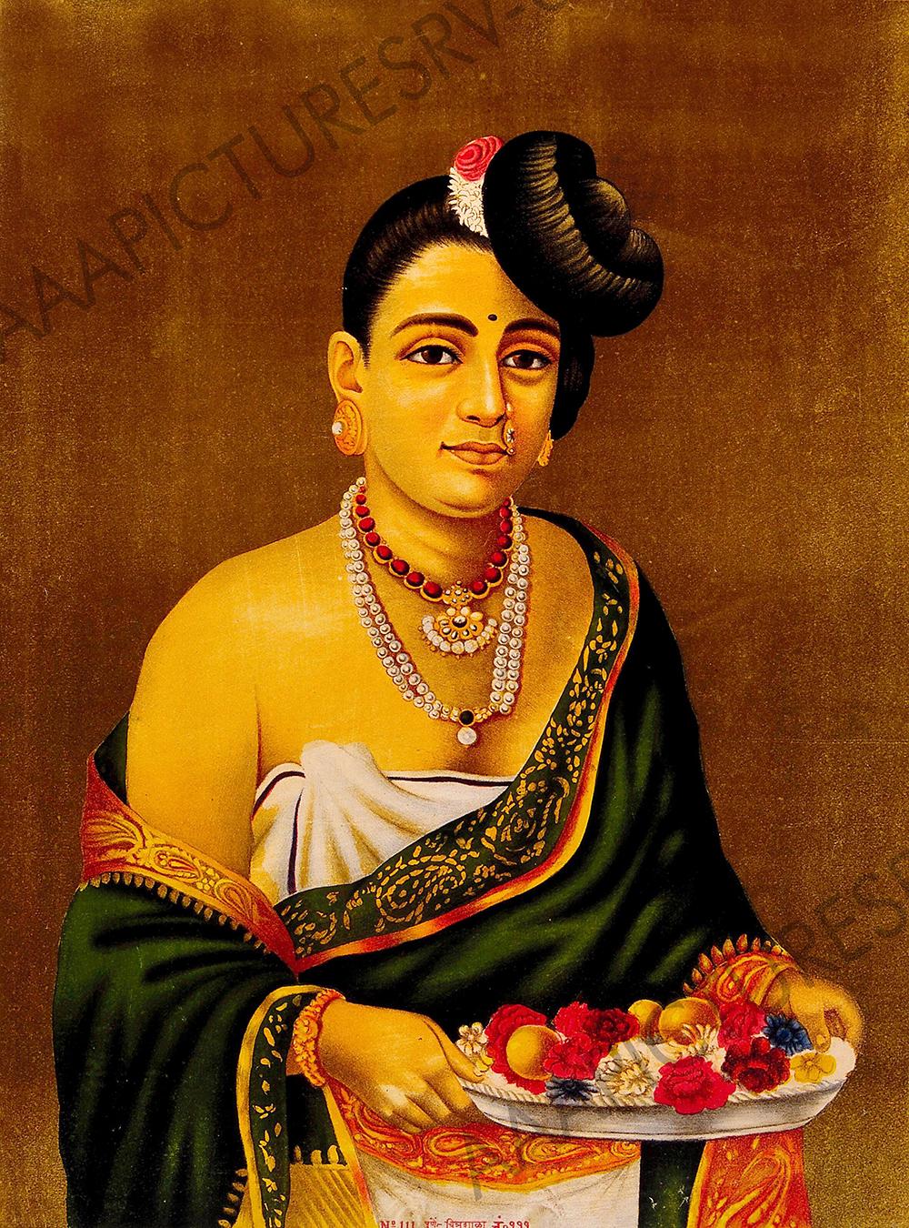 3 A Nayar lady with a distinctive hairstyle. Chromolithograph