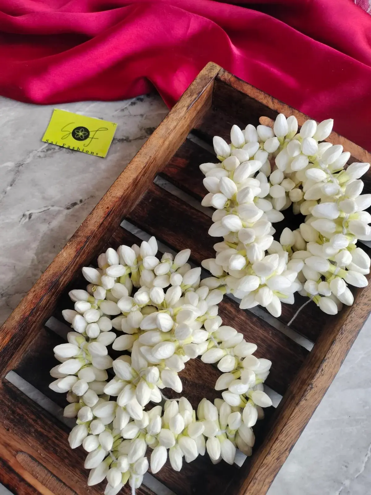 The Realistic & Reusable Jasmine Flower String – XL Bud (Gundu Malli Size) is a stunning floral accessory that captures the rich, full look of traditional gundu malli.