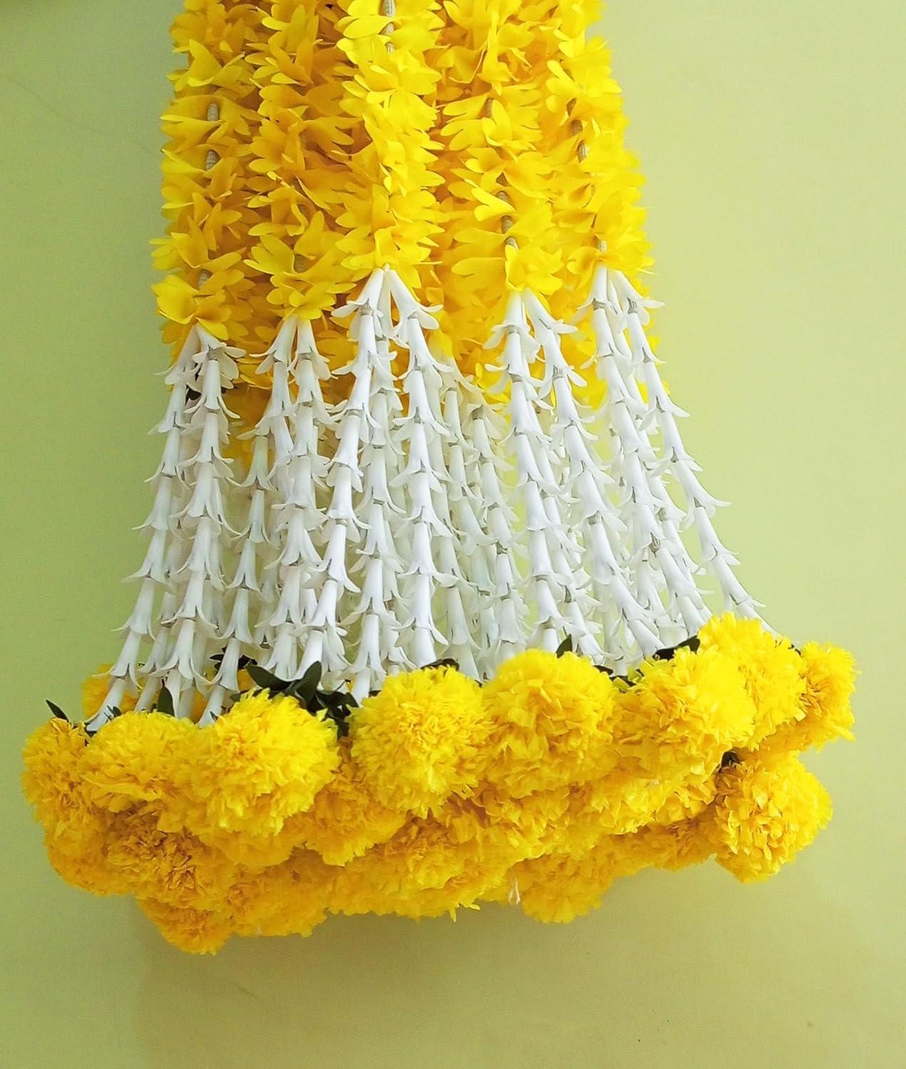 Go24shopping; choice good feel good artificial flower garland toran for door entrance home decoration hanging 4 pieces 5 feet (white-yellow)
