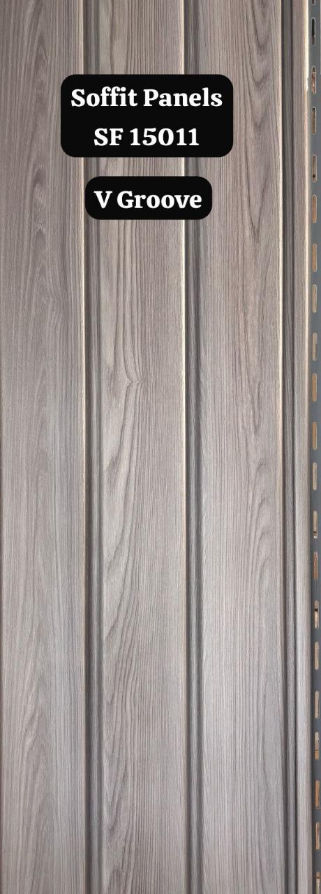 these panels often feature designs like the "v groove" seen in the image, replicating textures such as wood. they are suitable for both indoor and outdoor use, commonly applied in roof overhangs, interior ceilings, and feature walls.