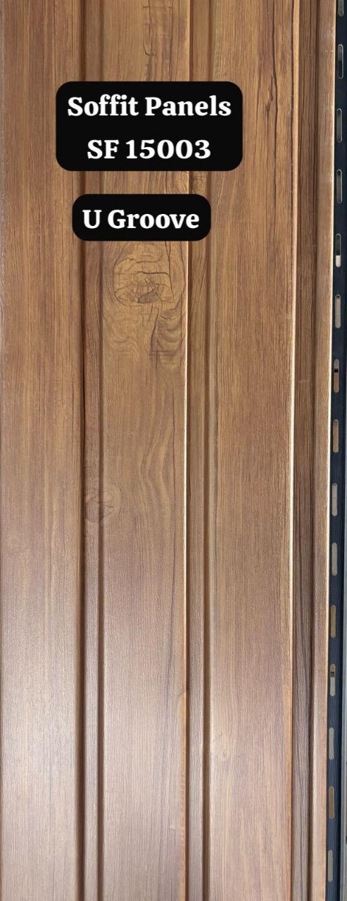 these panels often feature designs like the "v groove" seen in the image, replicating textures such as wood. they are suitable for both indoor and outdoor use, commonly applied in roof overhangs, interior ceilings, and feature walls.